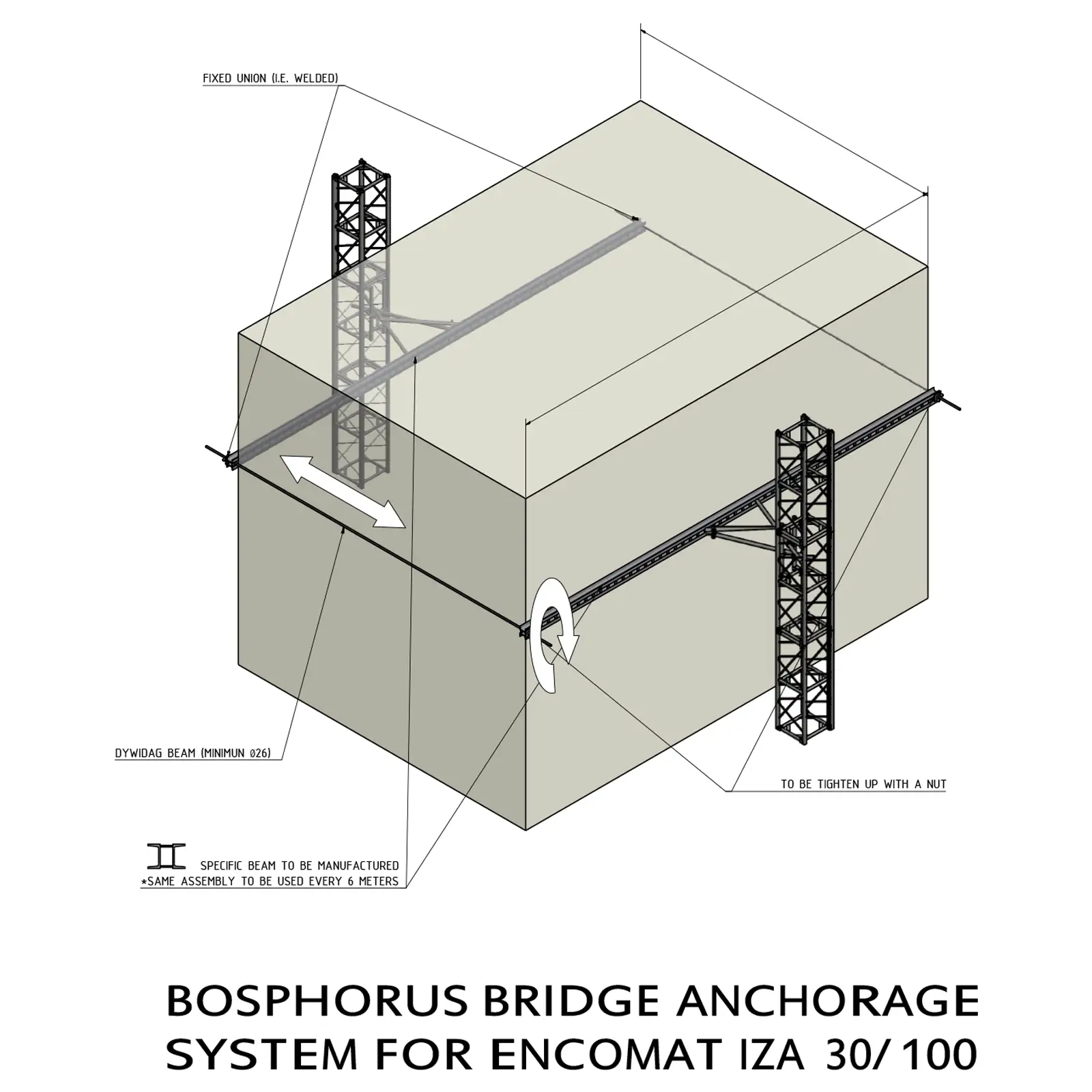 Tekli kurumlarda 6, İkili kurumlarda 9 metrede bir duvara ankraj yapılarak standart mastlarla 150, güçlendirilmiş mastlarla 200 metre yüksekliğe 7 metre/dakika hızla ulaşır.