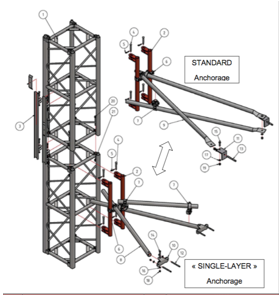 Motor gruplarının iki tarafına cıvatalarla tutturulan üçgen kanatlar ile tekli kurulumda ( tek mast) 10 metre, ikili kurulumda 30 metre (güçlendirilmiş kısa kanatlarla 11,5 ve 35)açıklığa ulaşabilir.