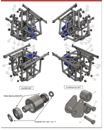 Kılavuzlama; Motor grubunun şaseye bağlantısı çepeçevre dört taraftan olduğu için motor grubu masta 20 noktadan temas eder Rulmanlı kılavuz tekerleri ikili ve demirdendir.