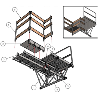 Platform ve uzatma yüzeyleri 135 genişliğinde ve kaymayan iki taraflı delinmiş saçtan mamul ve .